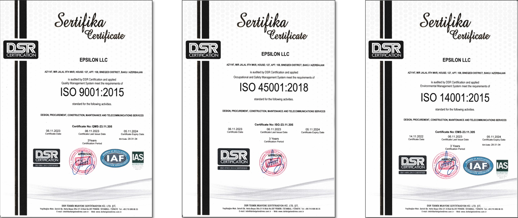 This comprehensive set of ISO certificates and licenses ensures that Epsilon LLC is not only following international standards but is also fully compliant with local regulations across its diverse range of services.